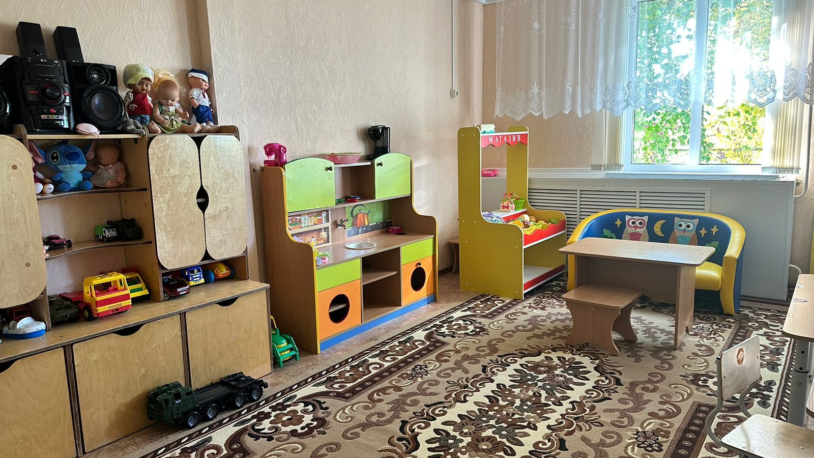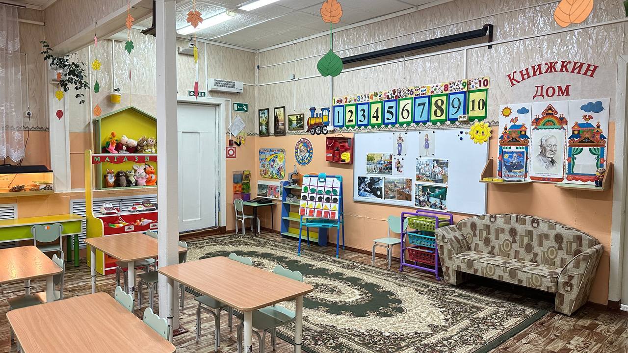 Групповые помещения расположены в корпусах №1, №2, №3. Оснащены функциональной мебелью (стенка для хранения игрушек и пособий, кухня, спальня, уголок ряжения, уголок уединения, мягкая мебель, книжный уголок, спортивный уголок, стол дидактический, парикмахерская, доска гладильная и др.) которая отвечает гигиеническим и возрастным требованиям ДОУ. В каждой группе имеется игровое оборудование, учебно-методические пособия в соответствии с возрастом, а также бактерицидный облучатель, магнитная доска, музыкальный центр, телевизор/планшет или проектор с экраном.