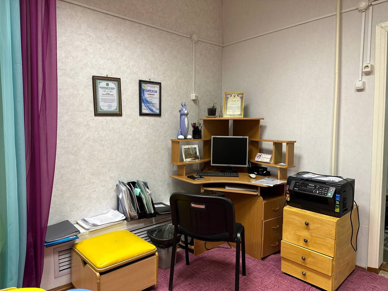 Кабинет учителя - логопеда. Расположен в корпусе №1. Предназначен для организации коррекционно-развивающей работы с детьми, консультативной работы с родителями и педагогами. Оснащение: письменный стол; шкаф с методической литературой; ноутбук; зеркало с дополнительным освещением; модульная мебель с наборами игр и пособия для дыхательной гимнастики, развития сенсорномоторных навыков и выразительности речи; интерактивный стол с набором игр; игровое оборудование; дидактический материал для автоматизации звуков; наборы различных игрушек, муляжей и музыкальных инструментов; развивающие игры по речевому развитию; папки и альбомы по лексическим темам; наборы зондов и логопедических инструментов для массажа и постановки звуков; диагностический инструментарий для обследования речевого развития детей 2 - 8 лет.