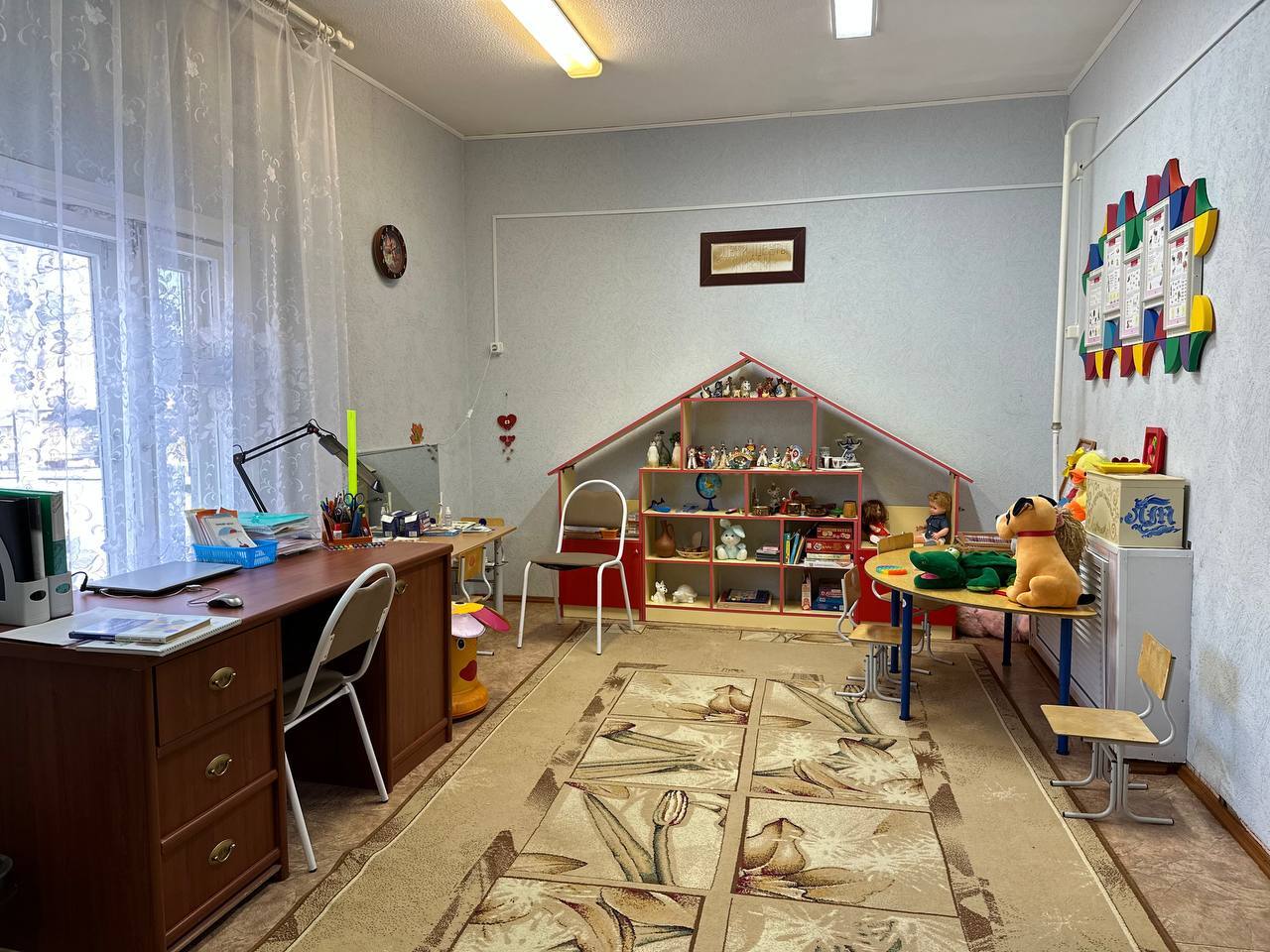 Кабинет педагога - психолога. Расположен в корпусе №1. Предназначен для организации коррекционно-развивающей работы с детьми, консультативной работы с родителями и педагогами. Оснащение: релаксационный дождь, релаксационная лампа - аквариум, релаксационные пуфы (кресло - мешок), программно-методическое обеспечение, библиотека специальной литературы, документация, методические разработки, компьютер, МФУ, музыкальный центр, дидактический стол, стол песочной терапии, детские стульчики, развивающие игры, игрушки, дидактические пособия, диагностический инструментарий.