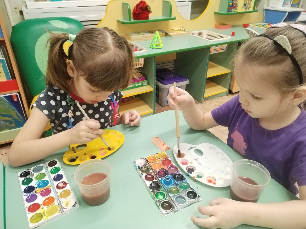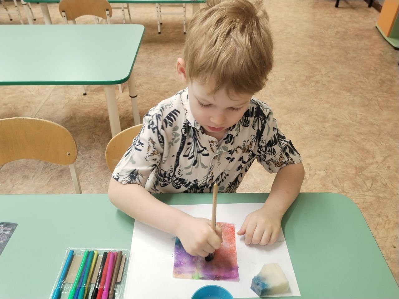 Ребята узнали, что два цвета дружат так сильно, что их становится сложно отличить друг от друга, когда они смешиваются. Дошколята сразу же решили проверить, какие можно получить цвета и оттенки путем смешивания основных цветов, и были в восторге от полученного результата. Затем они взяли фломастеры и раскрасила картинки, а обычная капля воды тоже смешала все цвета и превратила их рисунки в радужную фантазию. Отправившись в мир теней, ребята смогли создавать невероятные силуэты и наблюдать за игрой теней.