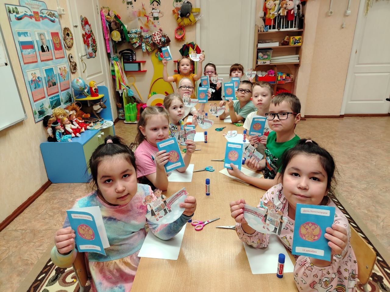 В ходе беседы воспитанники познакомились с понятием "Конституция" — это главный документ страны, который рассказывает, как живут люди и что для них важно. Узнали, что каждый человек достоин уважения и защиты, и что в нашей стране есть правила, помогающие всем жить хорошо и безопасно. В заключении занятия дети сделали творческие работы, которые отражают основные символы и идеи, связанные с Конституцией. Дети проявили творческие способности и закрепили полученные знания о государственном устройстве и правах граждан.